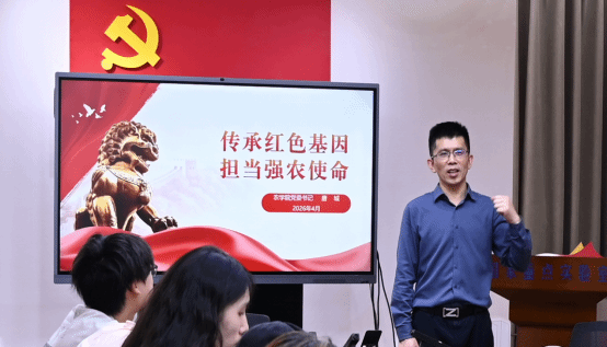 课上,唐城围绕“信仰、信念、信心”三个关键词展开授课,带领学员回望学校120年办学历程与作物学科的红色根脉。通过讲述江竹筠烈士、周开达院士等先辈的奋斗故事,深入解读“二杨精神”的内涵,系统阐释学科“以农救国、兴农报国”的深厚红色底蕴,引导学员从红色校史中汲取精神养分,筑牢信仰之基。结合农业强国建设“三步走”战略目标,唐城进一步解读了粮食安全、农业科技自立自强等核心任务的时代要求,明确了新时代新农人肩负的强农使命。授课过程中,他还穿插研究生就业座谈、省内外农科院人才引进等鲜活案例,引导学员打破传统就业思维局限,树立多元发展的职业认知。课程最后,唐城勉励全体学员争做理论学习先行者、理想信念坚守者、知农爱农践行者,主动将个人成长融入国家粮食安全与农业强国建设大局,以实干担当扛起强农重任。